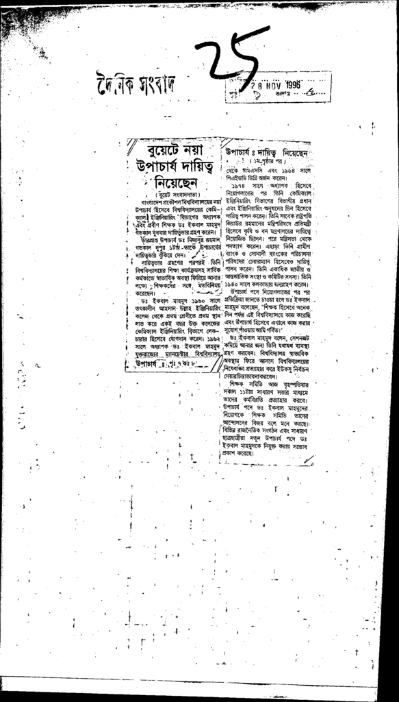 বুয়েট নয়া উপাচার্য দায়িত্ব নিয়েছেন Published on Newspaper দৈনিক সংবাদ Category Professional Education Professional Education Engineering Download