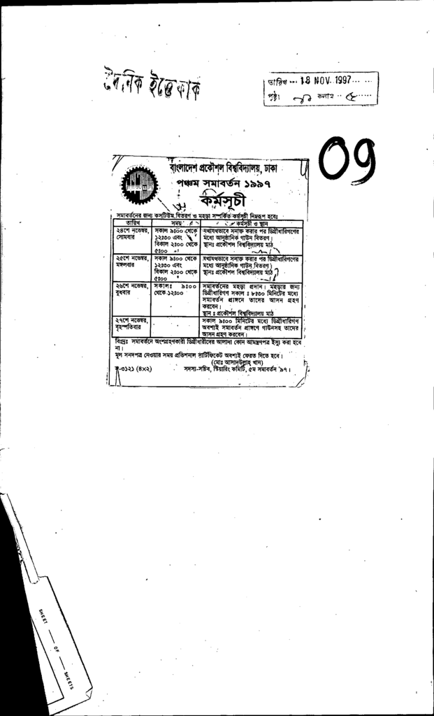 বাংলাদেশ প্রকৌশল বিশ্ববিদ্যালয় ঢাকা পঞ্চম সমাবর্তন ১৯৯৭ কর্মসূচী