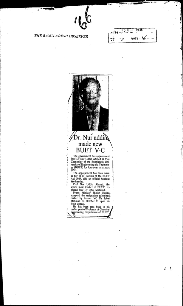 Dr. nur uddin made new buet v-c Published on Newspaper The Bangladesh Observer Category Professional Education Professional Education Engineering Download