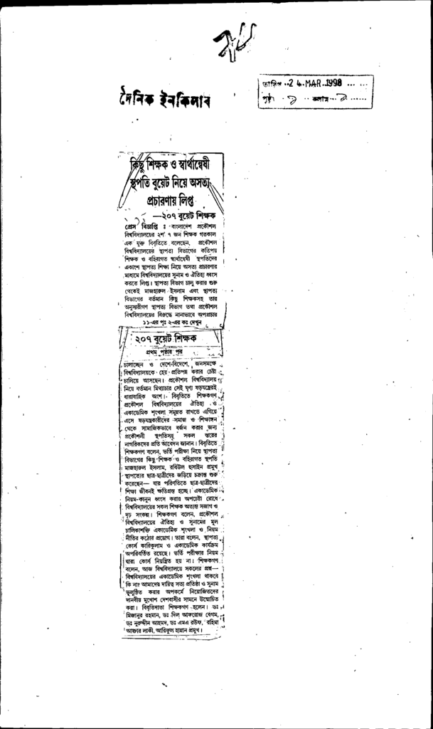 কিছু শিক্ষক ও স্বার্থান্বেষী স্থপতি বুয়েট নিয়ে অসত্য প্রচারণায় লিপ্ত Published on Newspaper দৈনিক ইনকিলাব Category Professional Education Professional Education Engineering Download