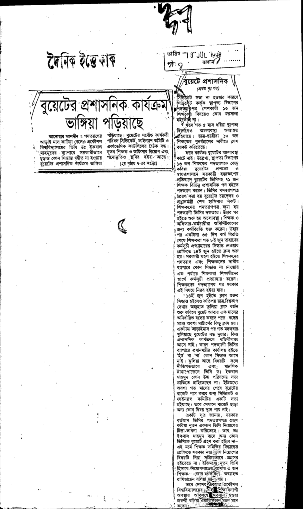 বুয়েটের প্রশাসনিক কার্যক্রম ভাঙ্গিয়া পড়িয়াছে