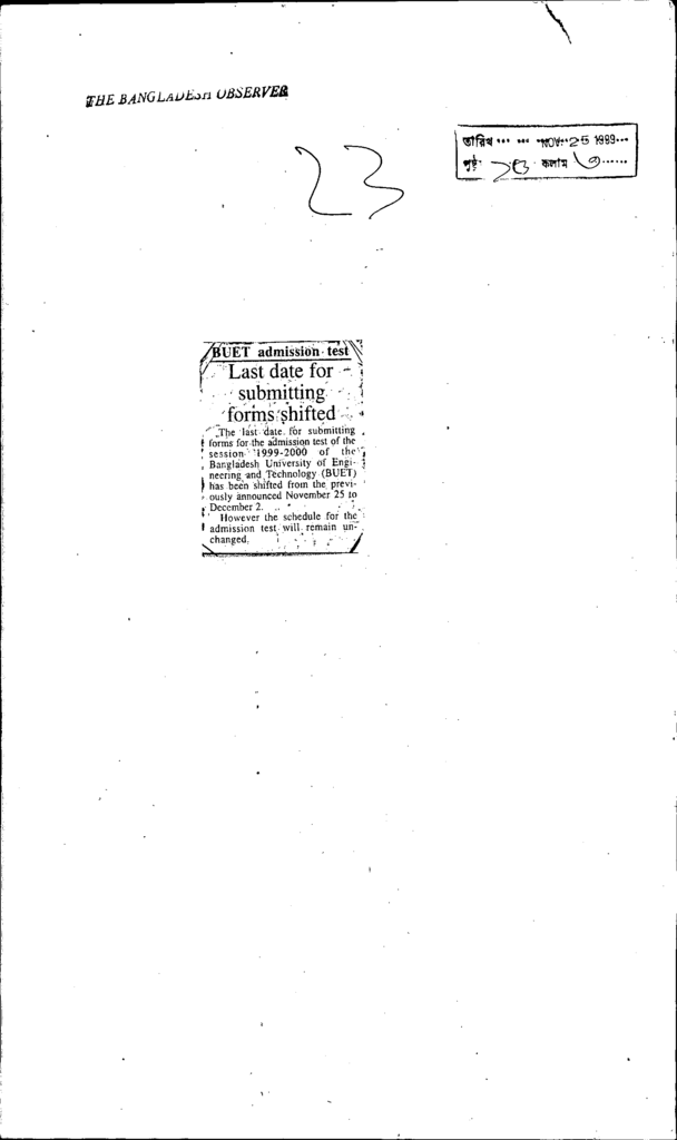 Buet admission test last date fro submitting formsshifted Published on Newspaper The Bangladesh Observer Category Professional Education Professional Education Engineering Download