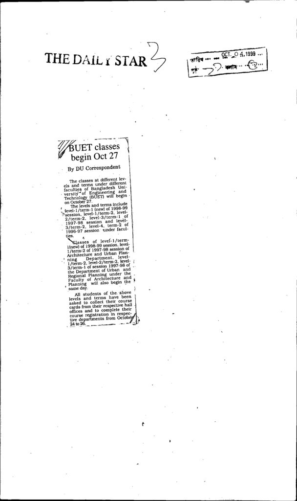 Buet classes begin oct 27 Published on Newspaper The Daily Star Category Professional Education Professional Education Engineering Download
