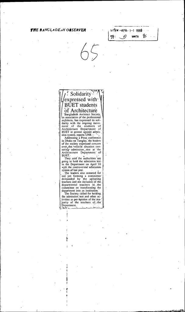 Solidarity expressed with buet students of architecture Published on Newspaper The Bangladesh Observer Category Professional Education Professional Education Engineering Download