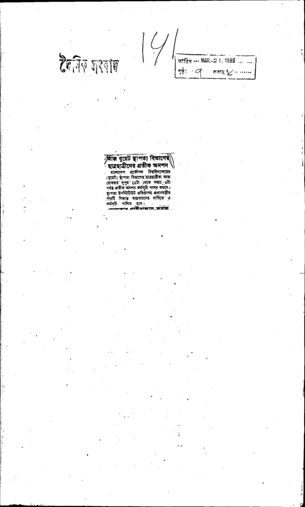 আজ বুয়েট স্থাপত্য বিভাগের ছাত্রছাত্রীদের প্রতীক অনশন Published on Newspaper দৈনিক সংবাদ Category Professional Education Professional Education Engineering Download