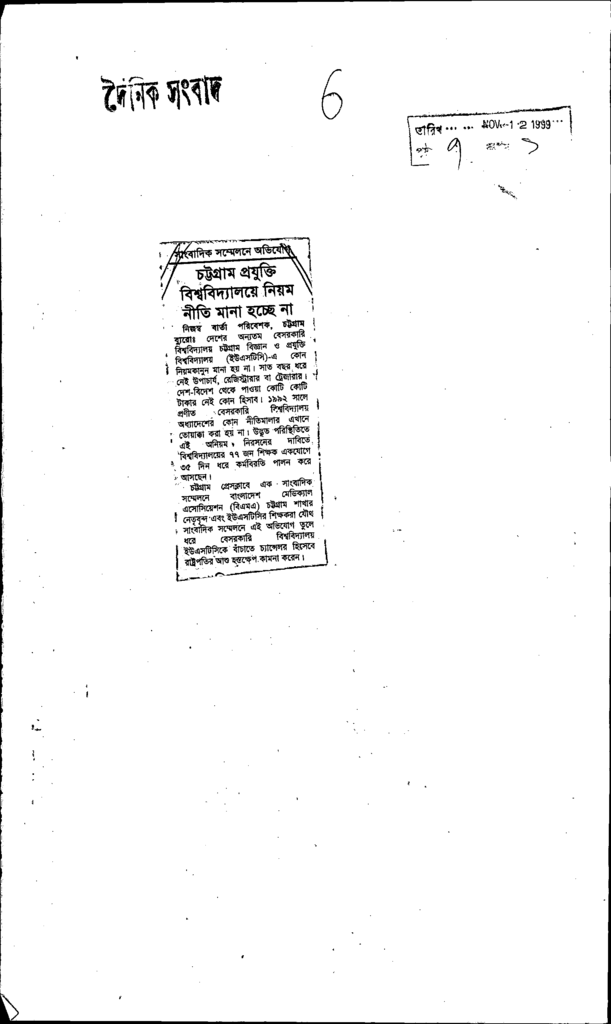 চট্রগ্রাম প্রযুক্তি বিশ্ববিদ্যালয়ে নিয়ম নীতি মানা হচ্ছে না Published on Newspaper দৈনিক সংবাদ Category Professional Education Professional Education Engineering Download