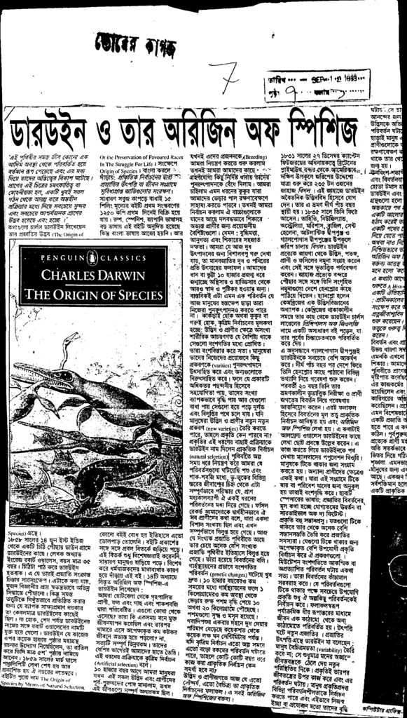 ডারউইন ও তার অরিজিন অফস্পিশিজ Published on Newspaper দৈনিক ভোরের কাগজ Category Professional Education Professional Education Engineering Download