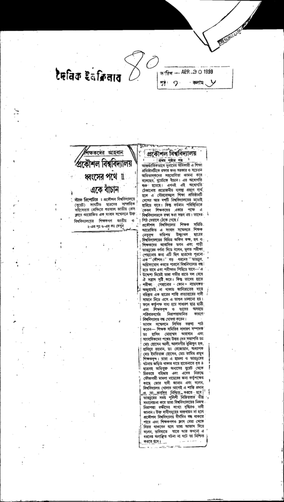 প্রকৌশল বিশ্ববিদ্যালয় ধ্বংসের পথে ।। একে বাঁচান
