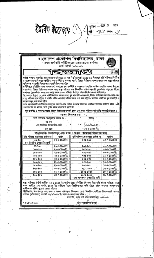 বিজ্ঞপ্তি Published on Newspaper দৈনিক ইত্তেফাক Category Professional Education Professional Education Engineering Download