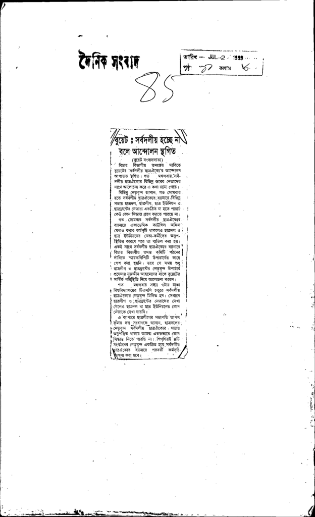 বুয়েটঃসর্দলীয় হচ্ছে না বলে আন্দোলন স্থগিত Published on Newspaper দৈনিক সংবাদ Category Professional Education Professional Education Engineering Download