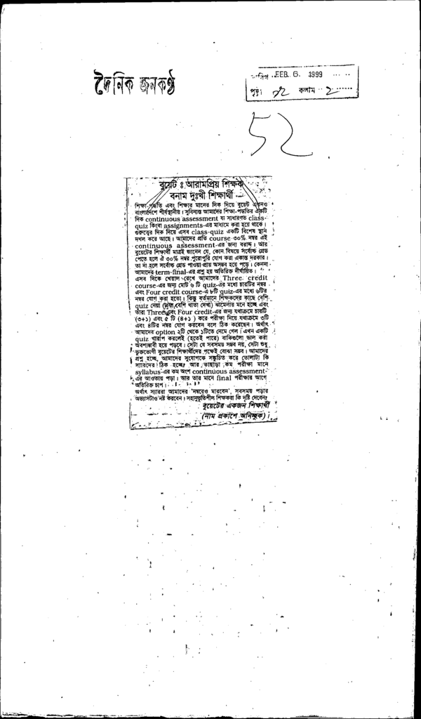 বুয়েট আরামপ্রিয় শিক্ষক বনাম দুঃখী শিক্ষার্থী Published on Newspaper দৈনিক জনকণ্ঠ Category Professional Education Professional Education Engineering Download