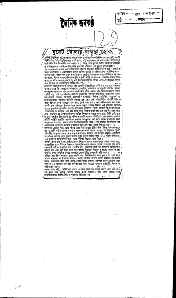 বুয়েট খোলার ব্যবস্থা হোক Published on Newspaper দৈনিক জনকণ্ঠ Category Professional Education Professional Education Engineering Download