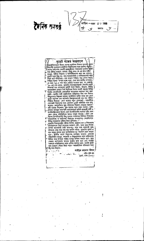 বুয়েট বন্ধের অন্তরালে Published on Newspaper দৈনিক জনকণ্ঠ Category Professional Education Professional Education Engineering Download