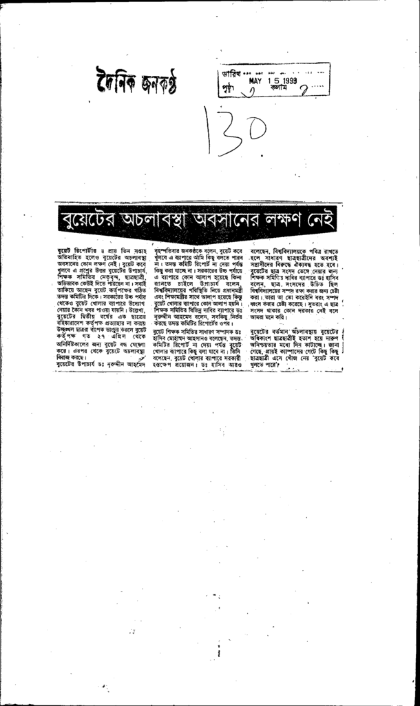 বুয়েটের অচলাবস্থা অবসানের লক্ষণ নেই Published on Newspaper দৈনিক জনকণ্ঠ Category Professional Education Professional Education Engineering Download