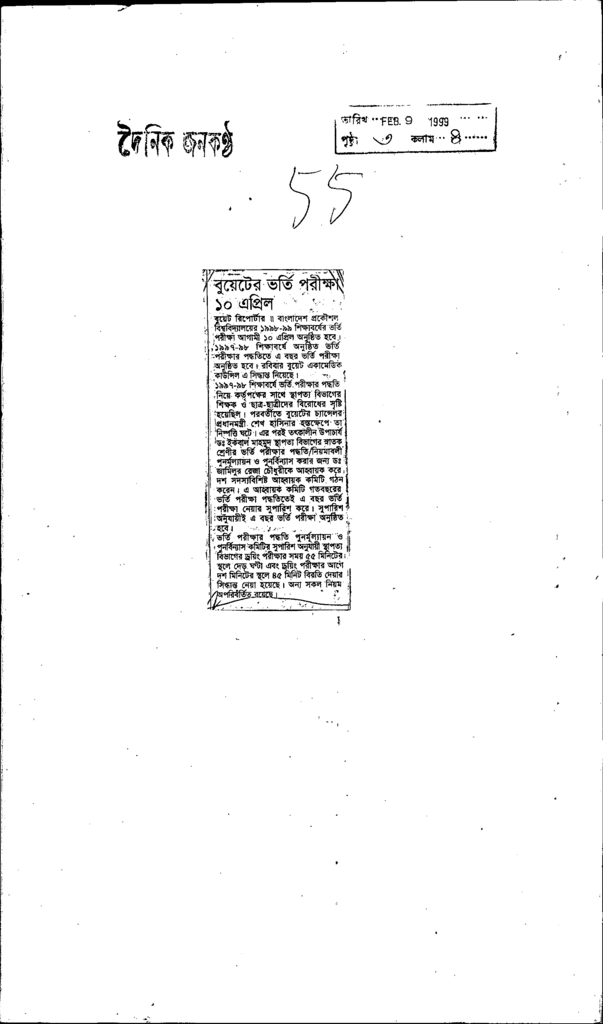 বুয়েটের ভর্তি পরীক্ষা ১০ এপ্রিল