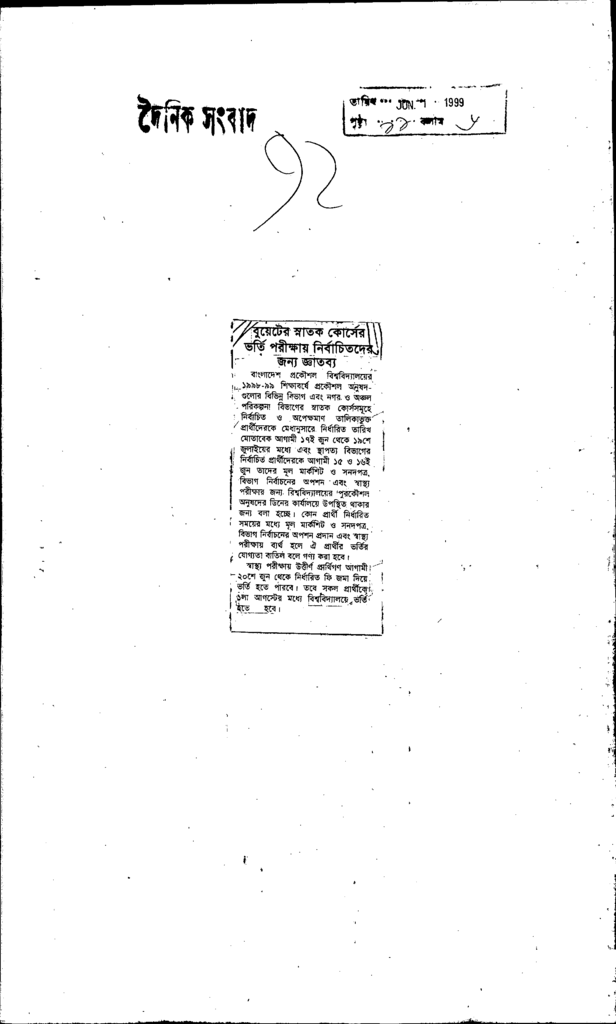 বুয়েটের স্নাতক কোর্সের ভর্তি পরীক্ষায় নির্বাচিতদের জন্য জ্ঞাতব্য Published on Newspaper দৈনিক সংবাদ Category Professional Education Professional Education Engineering Download