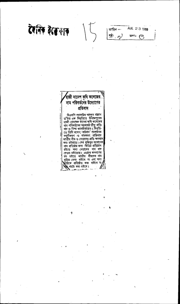 হাজী দানেশ কৃষি কলেজের নাম পরিবর্তনের উদ্যোগের প্রতিবাদ Published on Newspaper দৈনিক ইত্তেফাক Category Professional Education Professional Education Engineering Download