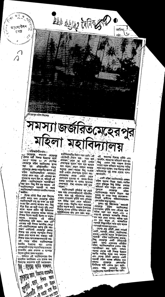 সমস্যা জর্জরিত মেহেরপুর মহিলা মহাবিদ্যালয় Published on Newspaper দৈনিক খবর Category General Education General Education Download