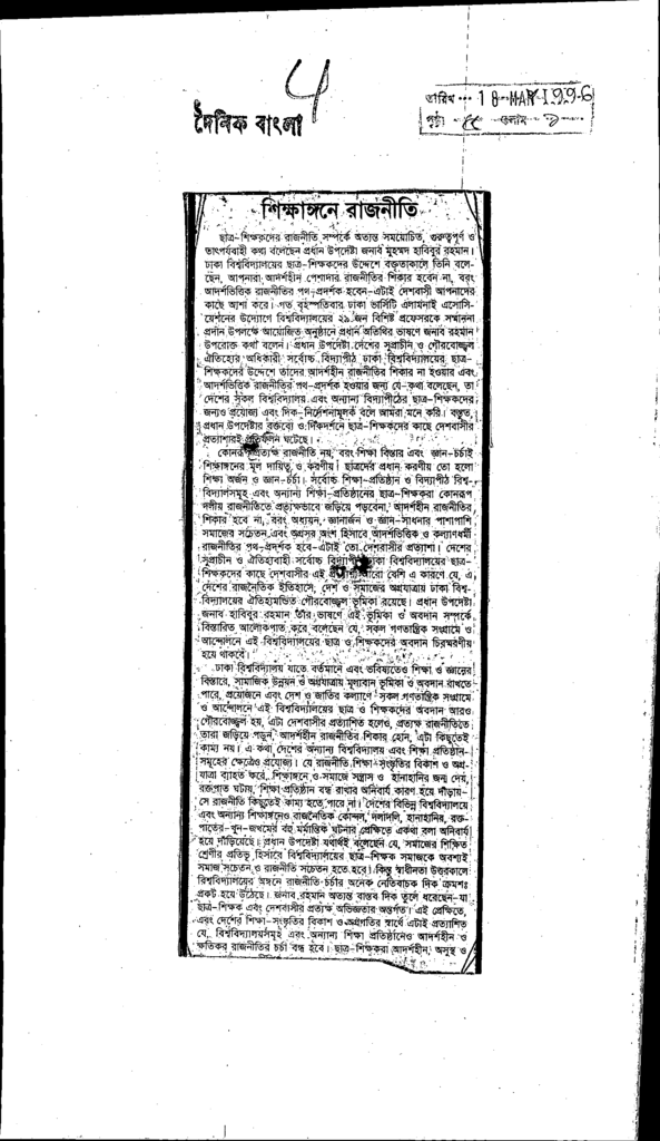 শিক্ষাঙ্গনে রাজনীতি Published on Newspaper দৈনিক বাংলা Category Education Policy / Education Commission Download