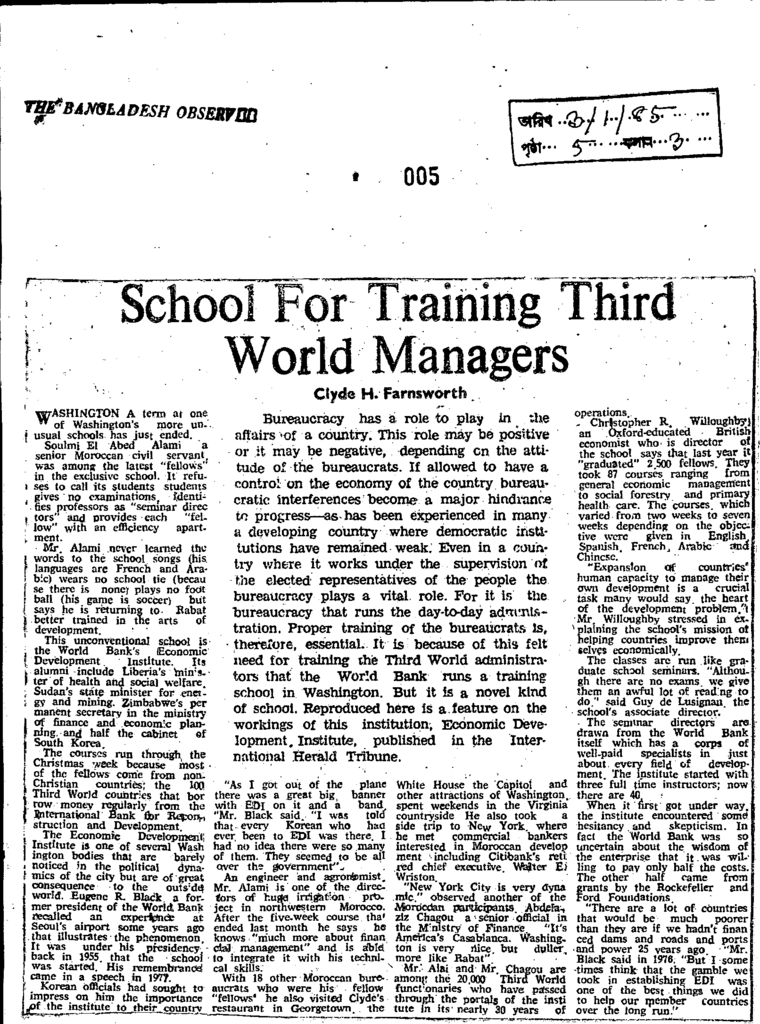 School for training third world Managers Published on Newspaper The Bangladesh Observer Category Admission / Seat Problem Download