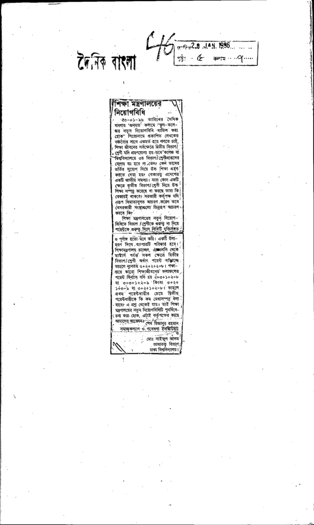 শিক্ষা মন্ত্রণালয়ের নিয়োগবিধি Published on Newspaper দৈনিক বাংলা Category Education Policy / Education Commission Personal Speech / Discussion / Comentary Secondary and Higher Secondary Education Download