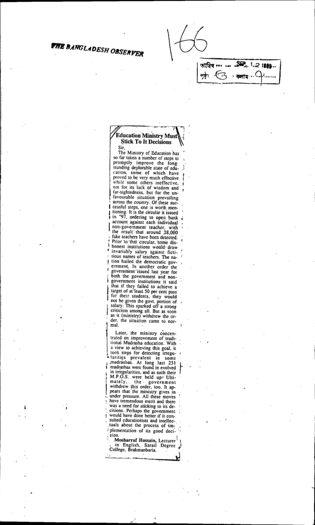 Education ministry must stick to it decission Published on Newspaper The Bangladesh Observer Category Personal Opinion / Discussion / Commentary Personal Speech / Discussion / Comentary Secondary and Higher Secondary Education Download