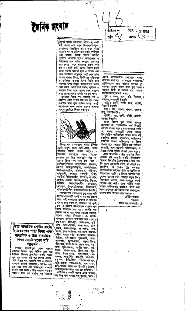 উচ্চমাধ্যমিক শ্রেণীর বাংলা ব্যাকরণের পাঠ্য বিষয় এবং মাধ্যমিক ও উচ্চমাধ্যমিক শিক্ষাবোর্ড সমূহের দৃষ্টি আকর্ষণ