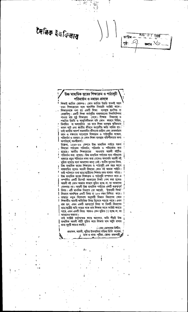 উচ্চমাধ্যমিক স্তরের শিক্ষাক্রম ও পাঠ্যসূচী পরিমার্জন ও নবায়ন প্রসঙ্গে Published on Newspaper দৈনিক ইনকিলাব Category Personal Opinion / Discussion / Commentary Personal Speech / Discussion / Comentary Secondary and Higher Secondary Education Download