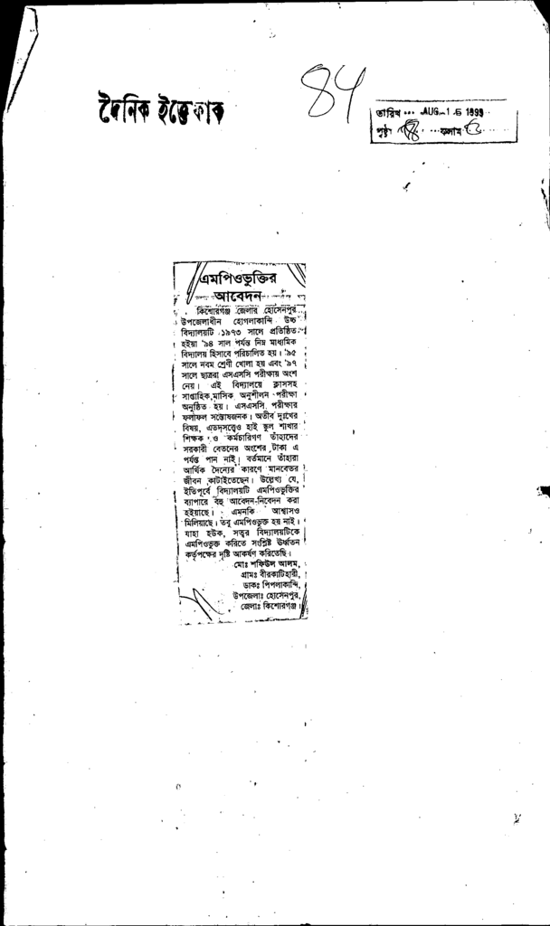 এমপিওভুক্তির আবেদন Published on Newspaper দৈনিক ইত্তেফাক Category Personal Opinion / Discussion / Commentary Personal Speech / Discussion / Comentary Secondary and Higher Secondary Education Download