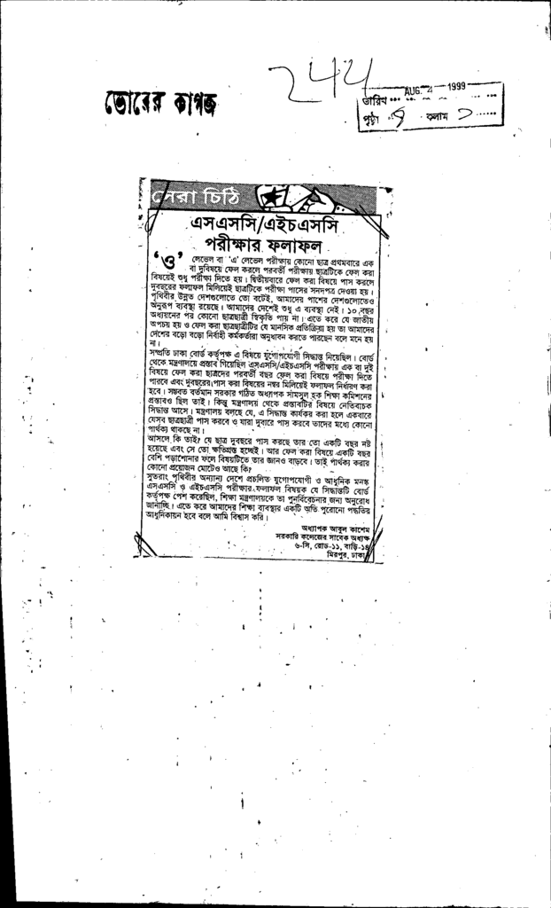 এসএসসি/এইচএসসি পরীক্ষার ফলাফল Published on Newspaper দৈনিক ভোরের কাগজ Category Personal Opinion / Discussion / Commentary Personal Speech / Discussion / Comentary Secondary and Higher Secondary Education Download