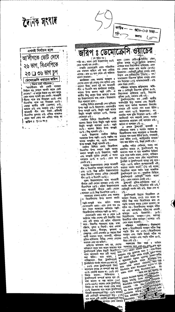 জরিপ : ডেমোক্রেসি ওয়াচের Published on Newspaper দৈনিক সংবাদ Category Personal Opinion / Discussion / Commentary Personal Speech / Discussion / Comentary Secondary and Higher Secondary Education Download