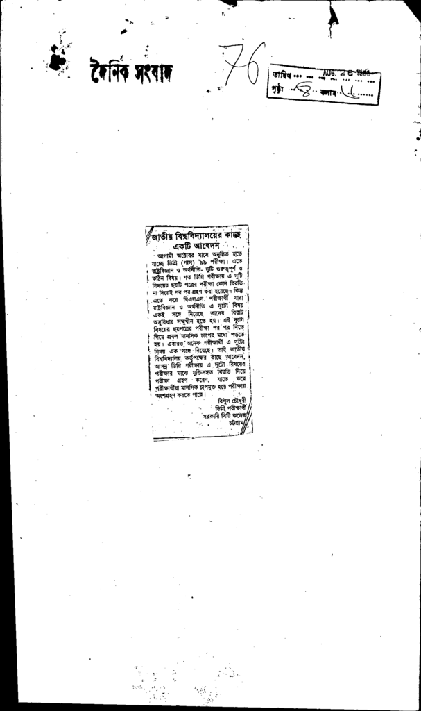 জাতীয় বিশ্ববিদ্যালয়ের কাছে একটি আবেদন Published on Newspaper দৈনিক সংবাদ Category Personal Opinion / Discussion / Commentary Personal Speech / Discussion / Comentary Secondary and Higher Secondary Education Download