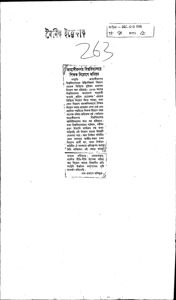 জাহাঙ্গীরনগর বিশ্ববিদ্যালয়ে শিক্ষক নিয়োগে অনিয়ম Published on Newspaper দৈনিক ইত্তেফাক Category Personal Opinion / Discussion / Commentary Personal Speech / Discussion / Comentary Secondary and Higher Secondary Education Download