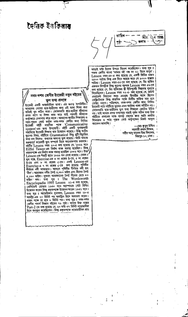 নবম-দশম শ্রেণীর ইংরেজি নতুন বইয়ে ভুল তথ্য প্রসঙ্গে Published on Newspaper দৈনিক ইনকিলাব Category Personal Opinion / Discussion / Commentary Personal Speech / Discussion / Comentary Secondary and Higher Secondary Education Download