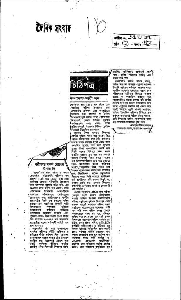 পরীক্ষায় নকল রোধের উপায় কি? Published on Newspaper দৈনিক সংবাদ Category Personal Opinion / Discussion / Commentary Personal Speech / Discussion / Comentary Secondary and Higher Secondary Education Download