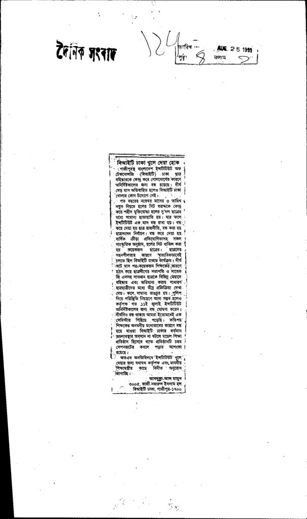 বিআটি ঢাকা খুলে দেয়া হোক Published on Newspaper দৈনিক সংবাদ Category Personal Opinion / Discussion / Commentary Personal Speech / Discussion / Comentary Secondary and Higher Secondary Education Download