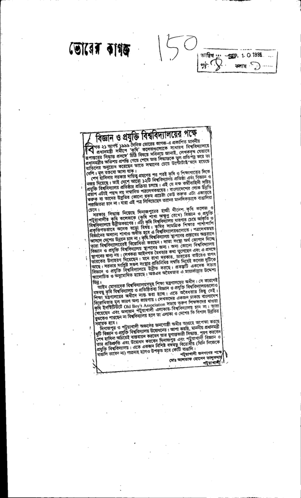 বিজ্ঞান ও প্রযুক্তি বিশ্ববিদ্যালয়ের পক্ষে Published on Newspaper দৈনিক ভোরের কাগজ Category Personal Opinion / Discussion / Commentary Personal Speech / Discussion / Comentary Secondary and Higher Secondary Education Download