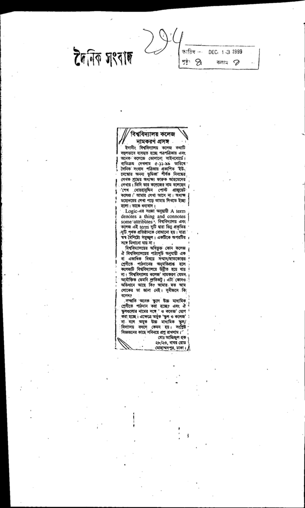 বিশ্ববিদ্যালয় কলেজ নামকরণ প্রসঙ্গ Published on Newspaper দৈনিক সংবাদ Category Personal Opinion / Discussion / Commentary Personal Speech / Discussion / Comentary Secondary and Higher Secondary Education Download