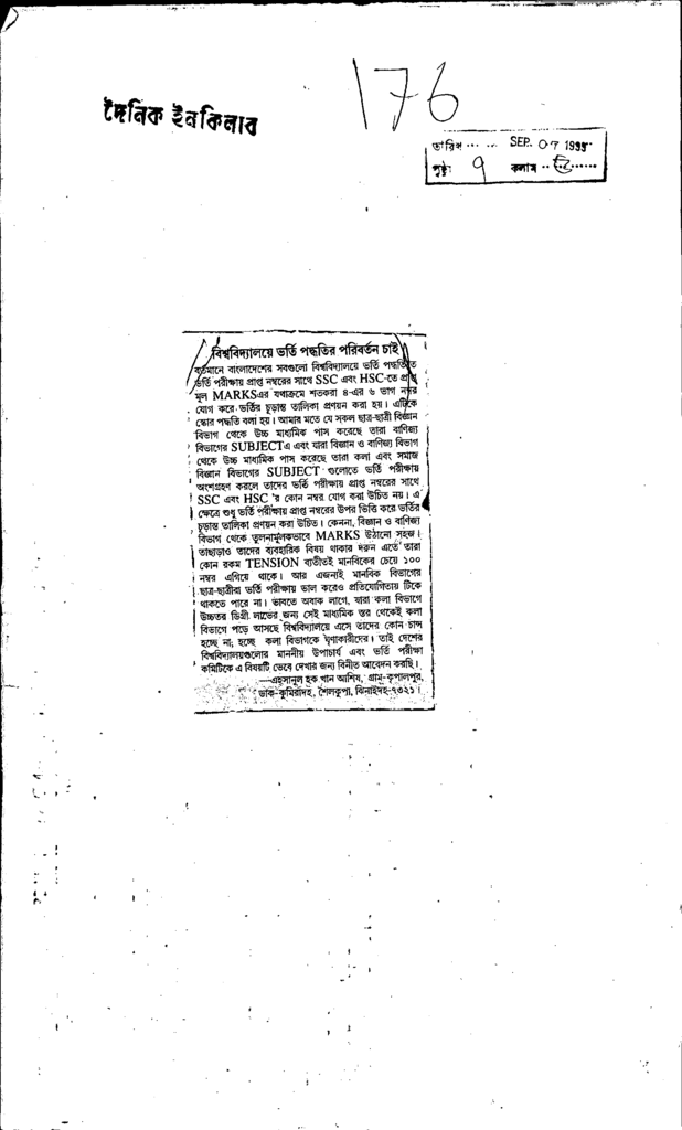 বিশ্ববিদ্যালয়ে ভর্তি পদ্ধতির পরিবর্তন চাই Published on Newspaper দৈনিক ইনকিলাব Category Personal Opinion / Discussion / Commentary Personal Speech / Discussion / Comentary Secondary and Higher Secondary Education Download