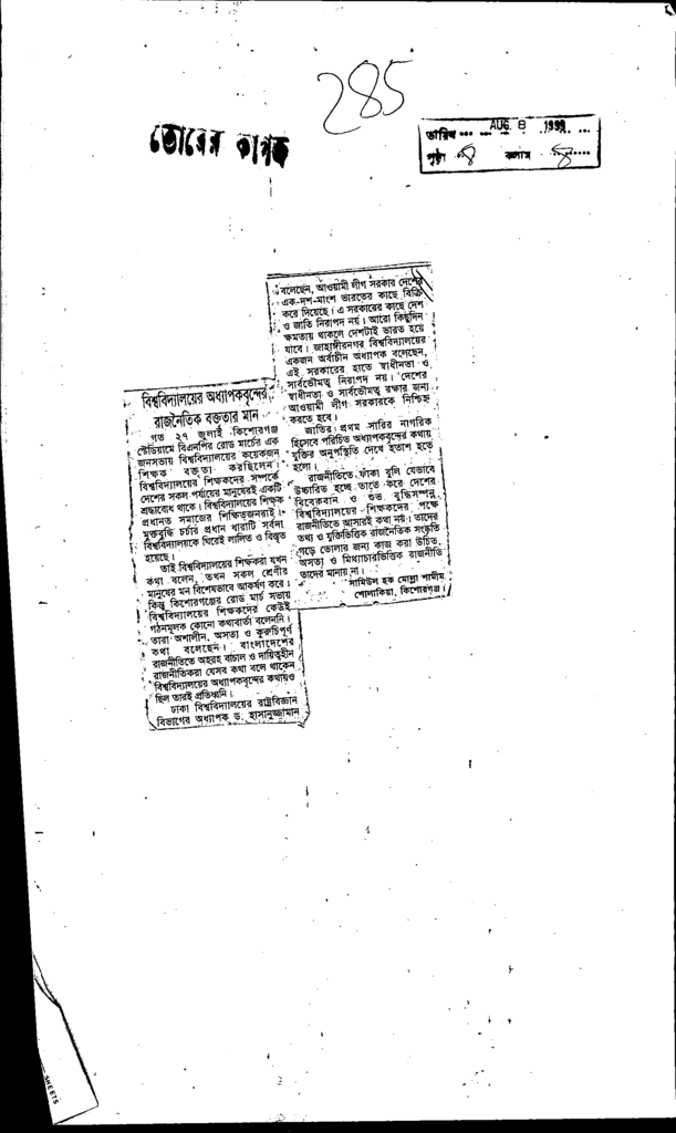 বিশ্ববিদ্যালয়ের অধ্যাপকবৃন্দের রাজনৈতিক বক্তৃতার মান