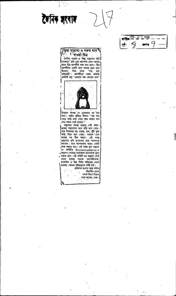 ভুয়া মাদ্রাসা ও গরুর ঘাস খাওয়া চিত্র Published on Newspaper দৈনিক সংবাদ Category Personal Opinion / Discussion / Commentary Personal Speech / Discussion / Comentary Secondary and Higher Secondary Education Download