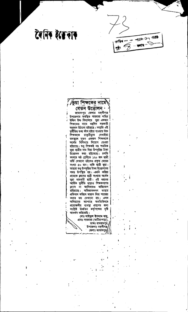 ভূয়া শিক্ষকের নামে বেতন উত্তোলন Published on Newspaper দৈনিক ইত্তেফাক Category Personal Opinion / Discussion / Commentary Personal Speech / Discussion / Comentary Secondary and Higher Secondary Education Download
