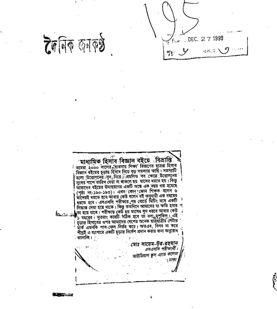মাধ্যমিক হিসাব বিজ্ঞান বইয়ে বিভ্রান্তি