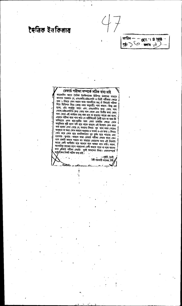 রেফার্ড পরীক্ষা সম্পর্কে সঠিক তথ্য চাই Published on Newspaper দৈনিক ইনকিলাব Category Personal Opinion / Discussion / Commentary Personal Speech / Discussion / Comentary Secondary and Higher Secondary Education Download