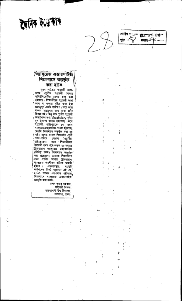 ল্যাঙ্গুয়েজ এক্সারসাইজ সিলেবাসে অন্তর্ভুক্ত করা হোক Published on Newspaper দৈনিক ইত্তেফাক Category Personal Opinion / Discussion / Commentary Personal Speech / Discussion / Comentary Secondary and Higher Secondary Education Download