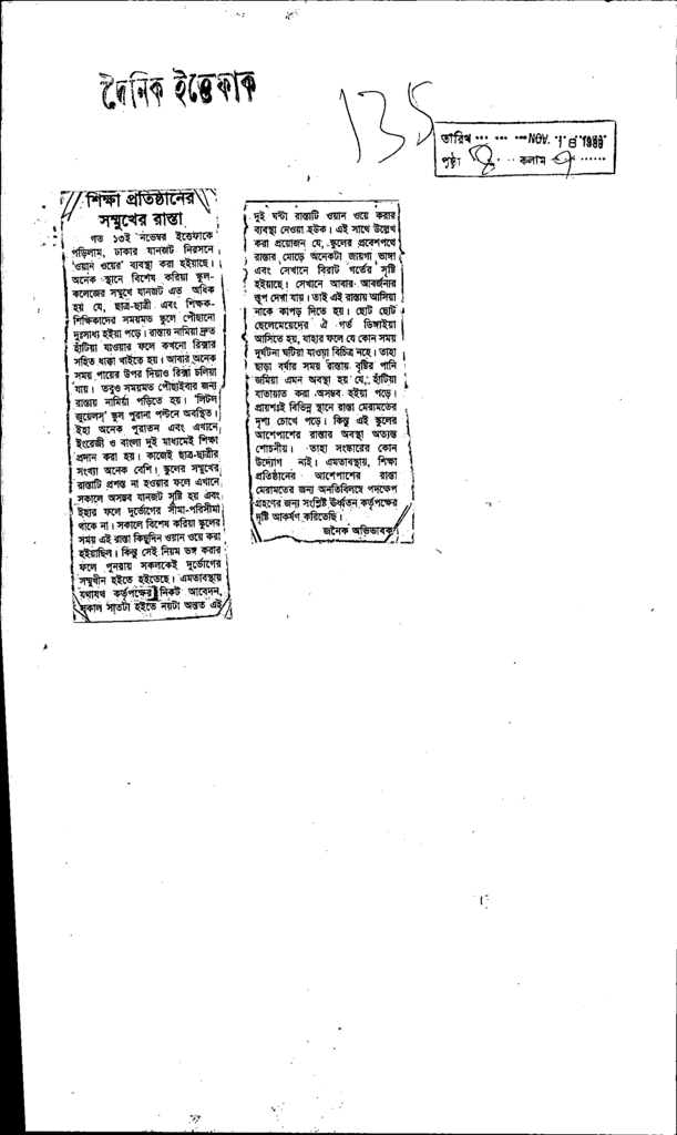 শিক্ষা প্রতিষ্ঠানের সম্মুখের রাস্তা Published on Newspaper দৈনিক ইত্তেফাক Category Personal Opinion / Discussion / Commentary Personal Speech / Discussion / Comentary Secondary and Higher Secondary Education Download