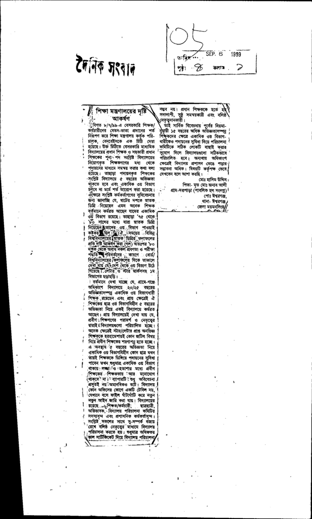 শিক্ষা মন্ত্রণালয়ের দৃষ্টি আকর্ষণ