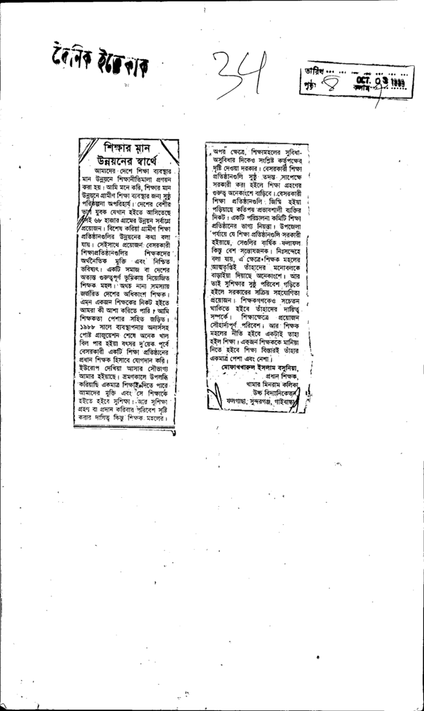 শিক্ষার মান উন্নয়নের স্বার্থে Published on Newspaper দৈনিক ইত্তেফাক Category Personal Opinion / Discussion / Commentary Personal Speech / Discussion / Comentary Secondary and Higher Secondary Education Download