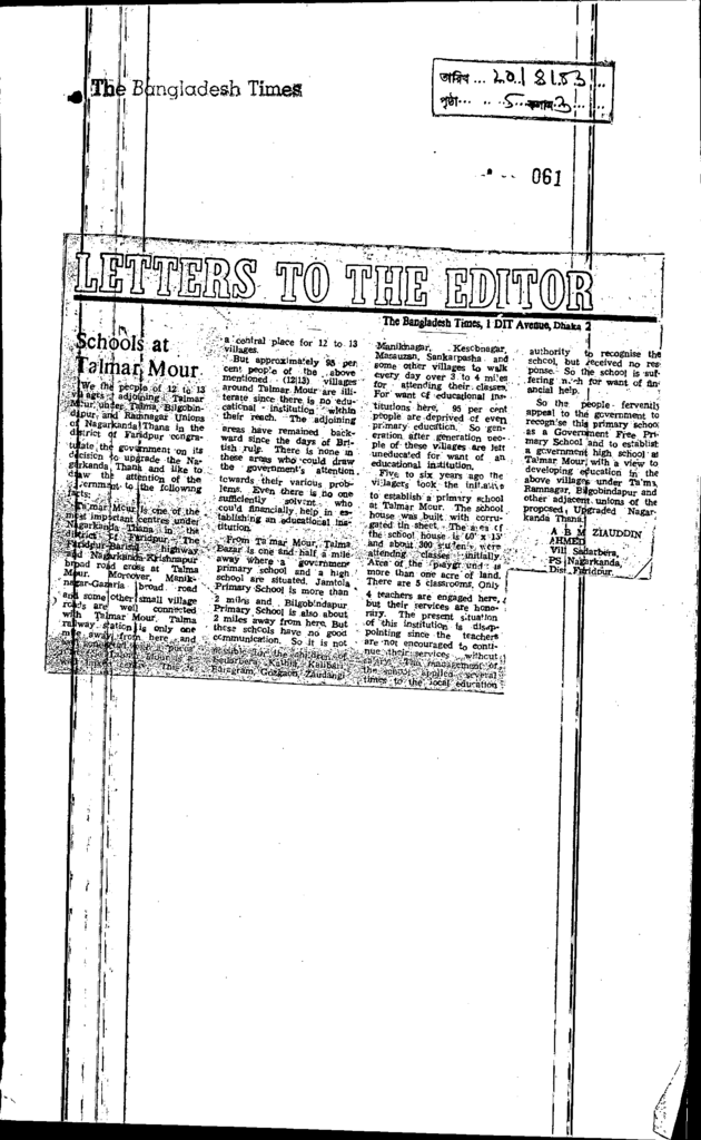 Schools at Talmar Mour Published on Newspaper The Bangladesh Times Category Personal Opinion / Discussion / Commentary Personal Speech / Discussion / Comentary Primary Education Download