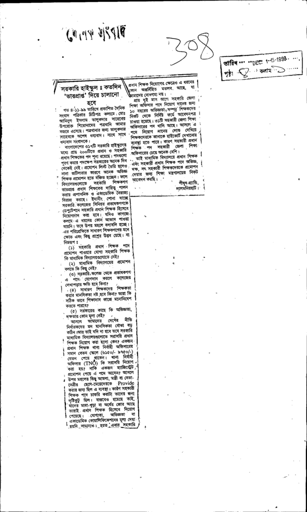 সরকারী হাইস্কুলঃ কতদিন ভারপ্রাপ্ত দিয়ে চালানো হবে Published on Newspaper দৈনিক সংবাদ Category Personal Opinion / Discussion / Commentary Personal Speech / Discussion / Comentary Secondary and Higher Secondary Education Download